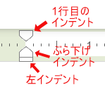 この上下には「1行目インデント」と「左インデント」を調整するインターフェースが存在しています。